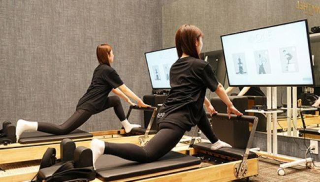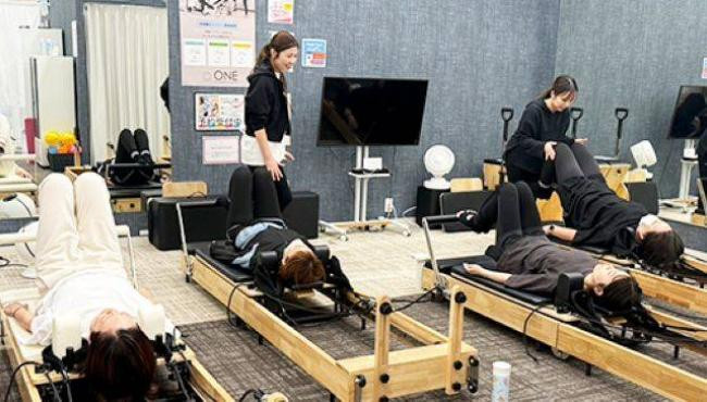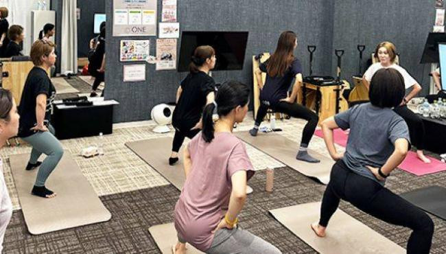 会員様に向け、リフォーマーグループレッスンも開催。3名限定なのでこちらもパーソナル感があって大人気!!